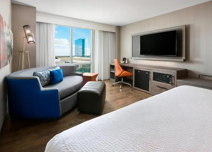 Downright Austin, A Renaissance Hotel, centrally located near the Red River Music District, offers guests spacious rooms equipped with modern amenities. Visitors can easily explore nearby attractions such as the Austin Convention Center and shopping on Sixth Street. The hotel features an on-site restaurant that serves vegetarian dishes, as well as a shared lounge and outdoor swimming pool for relaxation. Guests will find comfortable accommodations close to the city's vibrant scene.